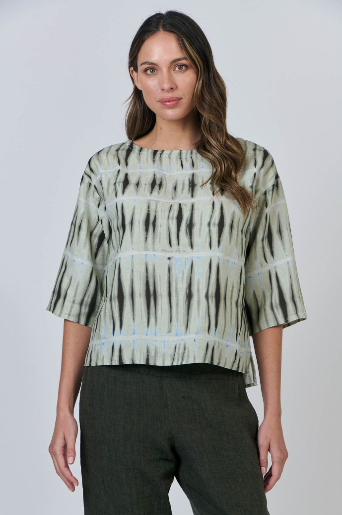 A gorgeous, best-selling linen top from Australian label Naturals by O&J. A wide, flowing elbow length sleeve and boat neck are lovely features, complimenting its summer vibe. Team with jeans or shorts, culottes or a skirt and sandals or heels depending on the occasion.