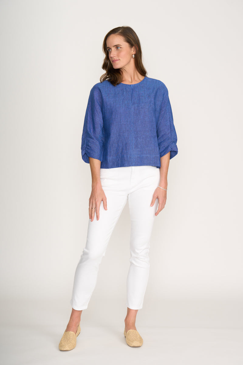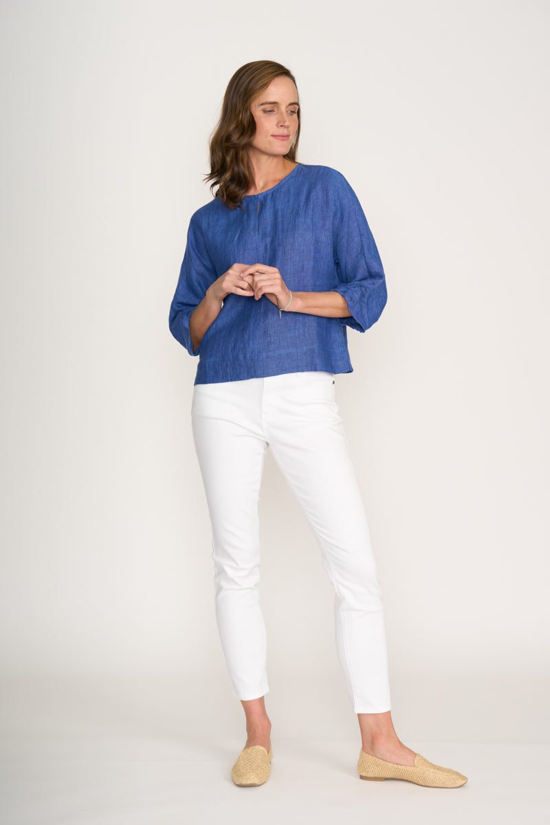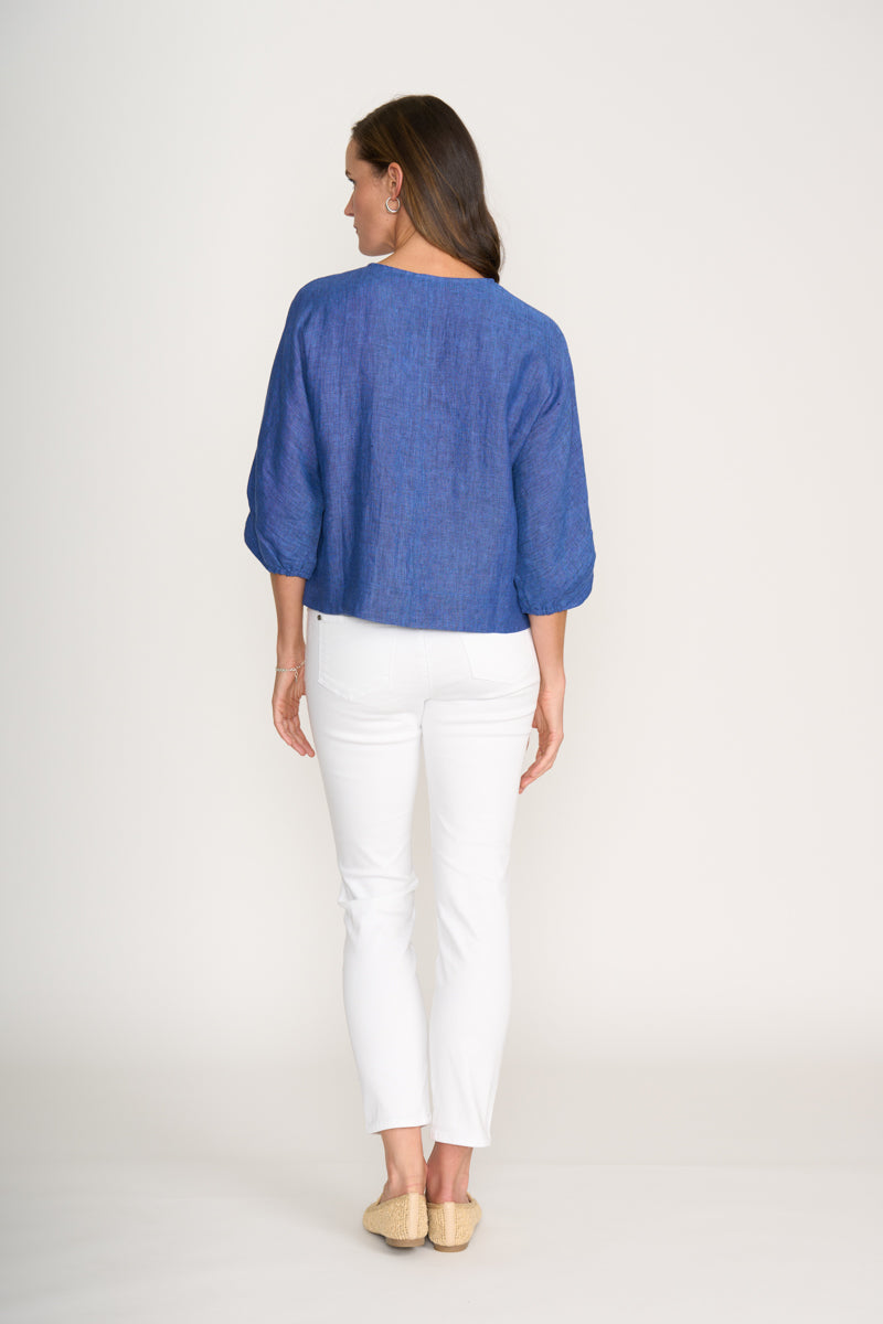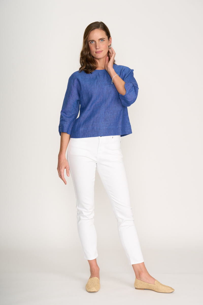 Made from 100% breathable linen, the Plot Twist Top - Capri combines comfort and style with a boat neck and 3/4 sleeves featuring elegant pleat details at the cuffs. Its front button closure and cropped length with a straight hem give it a modern, polished look. Proudly crafted under a New Zealand label, this top brings a unique touch of Foil’s quality and design to your wardrobe for effortless, sophisticated wear.