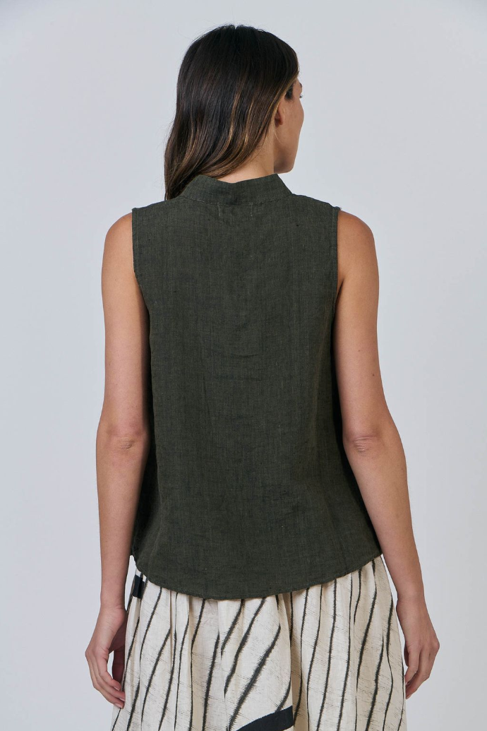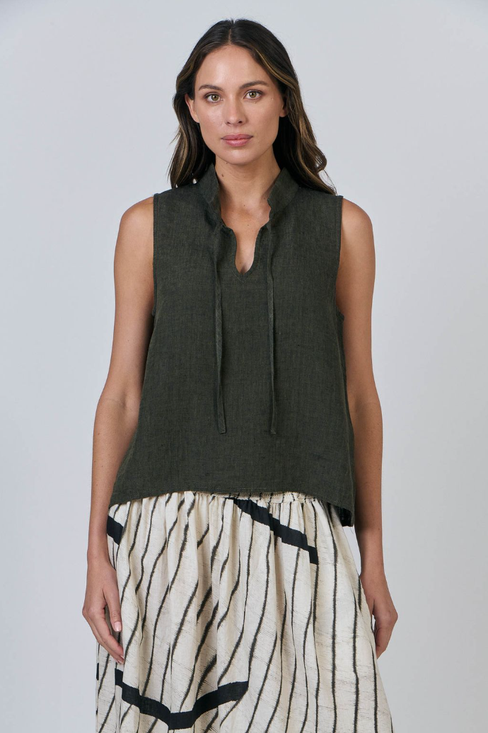 With a minimalistic style, this linen tank from Naturals by O&J. Layers easily: pop a blazer or a denim jacket over the top for evenings.