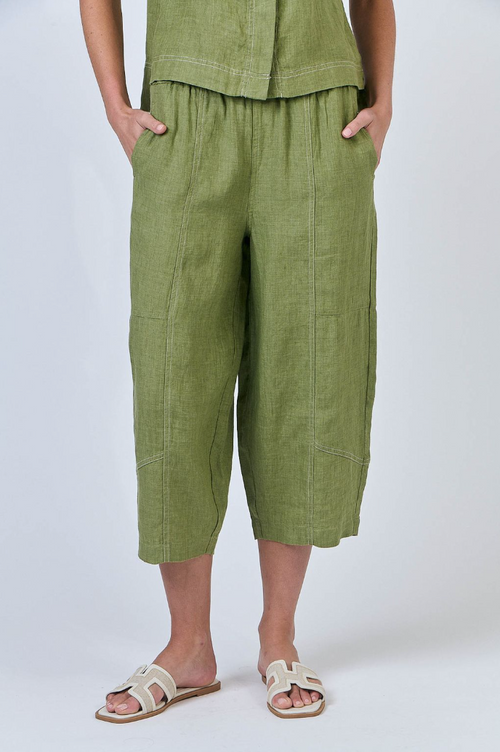 BARREL LEG 7/8 LINEN PANT - MOSS