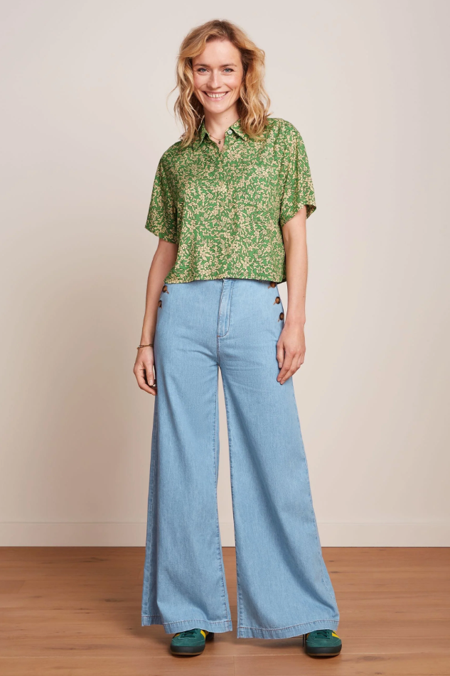 Oversized and cropped blouse featuring side slits for effortless movement.
