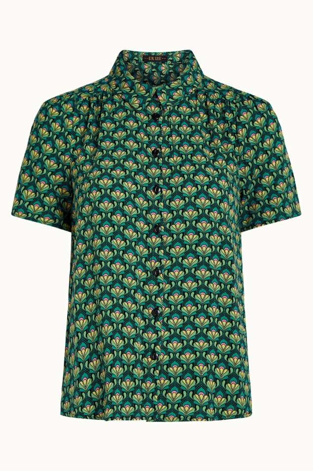 This sweet, short sleeved blouse is from UK label, King Louie. Made from a breathable, lightweight viscose and features a dobby texture. Tiny gathers at the shoulders elevate this pretty top.
